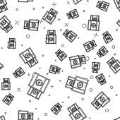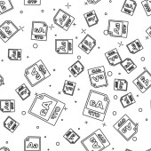 Czarna linia wisząca znak z tekstem na sprzedaż ikona na białym tle bez szwu wzór. Tablica z tekstem na sprzedaż. Ilustracja wektorowa