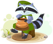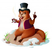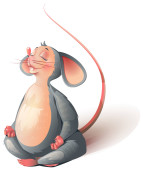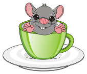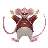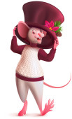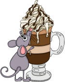 2020 rok szczura według chińskiego kalendarza. Cute mysz siedzi przy filiżance kawy i zjada ciasteczko 2020