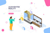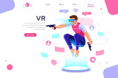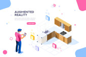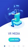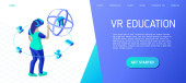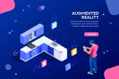 Obrazy wizualne, widok wirtualnego doświadczenia. Cyberspace, płaska koncepcja pracy multimedialnej. Może używać do wstęgi www, infografiki, obrazy bohaterów. Płaska ilustracja wektorowa izometryczna.