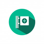 Znak Cross Pharmacy. Płaska ikona koloru z beżowym odcieniem. Ilustracja wektorowa serwisu miejskiego