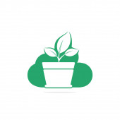 Kwiat logo pot i roślin. Logo wektor wzrost.
