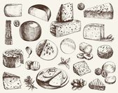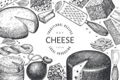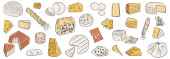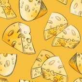 Bezszwowy wzór z różnymi rodzajami sera. Żółte tło.