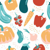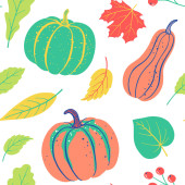 Bezszwowe nieograniczone tło wektorowe z różnymi kolorami i kształtem pumkins. Jesień squash w kreskówek ręcznie rysowane styl wykonany jako wzór powtarzania