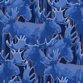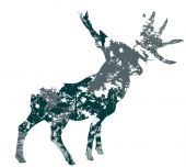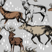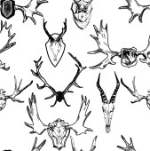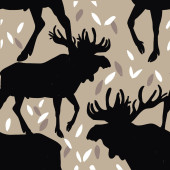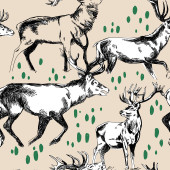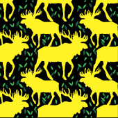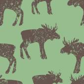 Bezproblemowy wzór z łosia stylu Vintage. Dorosły łosie z dużymi poroża. Liście roślin.
