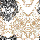 Zdjęcie "Bezproblemowy wzór z trofeów myśliwskich. Róg czaszki jelenia. Rysowanie ręcznie w stylu Vintage." może być wykorzystywane do celów osobistych i komercyjnych zgodnie z warunkami zakupionej licencji Royalty-free. Obraz jest dostępny do pobrania w jakości wysokiej rozdzielczości do 5760x3840.