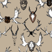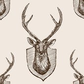 Bezproblemowy wzór z trofeów myśliwskich. Róg czaszki jelenia. Rysowanie ręcznie w stylu Vintage.