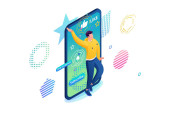 Zdjęcie "Młoda dziewczyna dostosowuje wykresy i wykresy na smartfonie. Koncepcja analizy danych. izometryczny 3D. Koncepcja projektowania stron internetowych" może być wykorzystywane do celów osobistych i komercyjnych zgodnie z warunkami zakupionej licencji Royalty-free. Obraz jest dostępny do pobrania w jakości wysokiej rozdzielczości do 5760x3840.