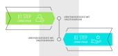 Wektor nowoczesny infograficzny szablon strzałka dla dwóch diagramów, wykres, prezentacja. Koncepcja biznesowa z 2 opcjami, etapami, częściami. Używany do zawartości, krok do kroku, oś czasu, przepływ pracy, Sieć Web, raport