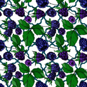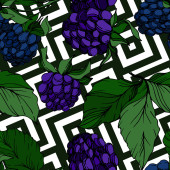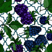 Wektor BlackBerry zdrowej żywności. Czarno-biała grawerowana sztuka atramentu. Płynny wzór tła.