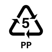PP 5 plastikowy symbol recyklingu, znak polipropylenu, ikona na białym tle