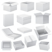 Zestaw realistycznych białych skrzynek do doręczania ładunków