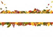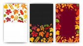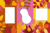 Ustaw jesienne szablony tła jesiennych opadłych liści pomarańczowo-żółtych. Banery z mediów społecznościowych. Szablon zaproszenia na imprezę, katalog produktów, reklama. Wektor izoalted modne mieszkanie