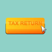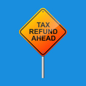 Koncepcja zeznania podatkowego, moneta i znak powrotu podatkowego na rękę.