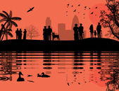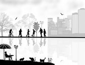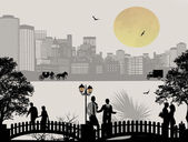 Ilustracja wektorowa krajobrazu i ulicy miasta sceny z ludźmi i Wieża Eiffla