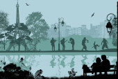Zdjęcie "Ilustracja wektorowa krajobrazu i ulicy miasta sceny z ludźmi i Wieża Eiffla" może być wykorzystywane do celów osobistych i komercyjnych zgodnie z warunkami zakupionej licencji Royalty-free. Obraz jest dostępny do pobrania w jakości wysokiej rozdzielczości do 5760x3840.