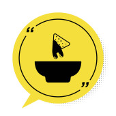 Zdjęcie "Czarny nachos w płytce ikona izolowane na czarnym tle. Chipsy tortilla lub nachos Tortillas. Tradycyjna Meksykańska Fast food. Srebrny kwadrat przycisk. Ilustracja wektorowa" może być wykorzystywane do celów osobistych i komercyjnych zgodnie z warunkami zakupionej licencji Royalty-free. Obraz jest dostępny do pobrania w jakości wysokiej rozdzielczości do 5760x3840.