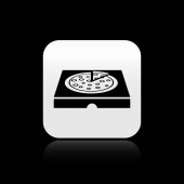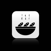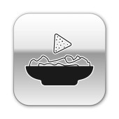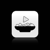 Czarny nachos w płytce ikona izolowane na czarnym tle. Chipsy tortilla lub nachos Tortillas. Tradycyjna Meksykańska Fast food. Srebrny kwadrat przycisk. Ilustracja wektorowa