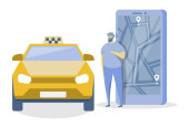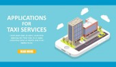 Online samochodów i pojazdów publicznych srvices, wektor płaskie izolowane ilustracji