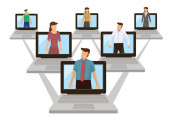 Połączenie online dla biznesu Metaphor Cartoon Vector Illustrat