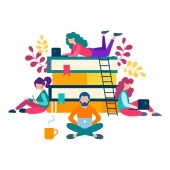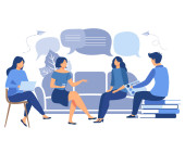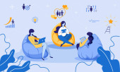 Dziewczyny siedzące na miękkich fotelach Szkolenia Online