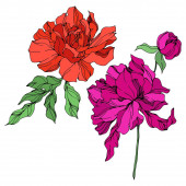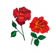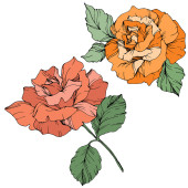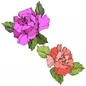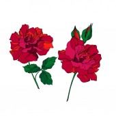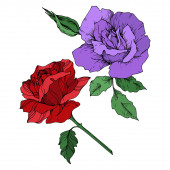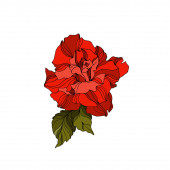 Wektor Rose kwiatowe kwiaty botaniczne. Czerwony i zielony grawerowany tusz. Izolowany element ilustracji róży.