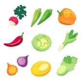 Warzywa żywności plasterek ikony zestaw koncepcji kolekcji. Wektor płaska kreskówka projekt graficzny ilustracja