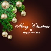 Boże Narodzenie tło z pięknymi złotymi kulkami i wstążkami. Projekt tła świątecznego. Wektor.