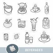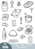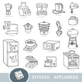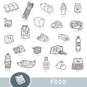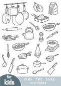Czarno-biały zestaw naczyń kuchennych, kolekcja elementów wektorowych z nazwami w języku angielskim