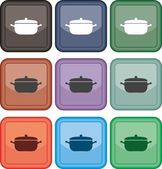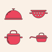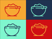 Kolorowa ikona patelni izolowana na tle koloru. Smażyć lub pieczeń żywności symbol. Rysowanie w stylu vintage. Ilustracja wektora
