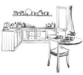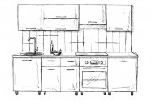 Ręcznie rysowane meble kuchenne. Ilustracja wektorowa w styl szkic