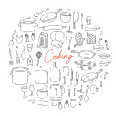 Zdjęcie "Przybory kuchenne i narzędzia okrągłe wektor ilustracji wzór. Naczynia do gotowania, szkło, porcelana i emalia umieszczone wokół miejsca na tekst." może być wykorzystywane do celów osobistych i komercyjnych zgodnie z warunkami zakupionej licencji Royalty-free. Obraz jest dostępny do pobrania w jakości wysokiej rozdzielczości do 5760x3840.