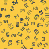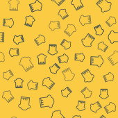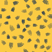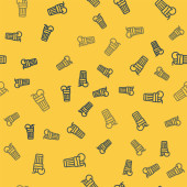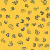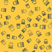 Niebieska linia Popcorn w kartonowym pudełku ikona odizolowany bezszwowy wzór na żółtym tle. Pudełko z popcornem. Ilustracja wektora