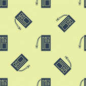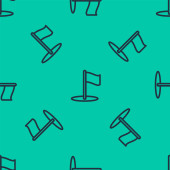 Niebieska linia Swing ikona odizolowany bezszwowy wzór na zielonym tle. Symbol placu zabaw. Ilustracja wektora