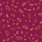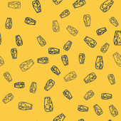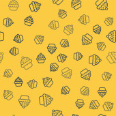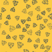 Niebieska linia Popcorn w ikonie miski odizolowany bezszwowy wzór na żółtym tle. Pudełko z popcornem. Ilustracja wektora