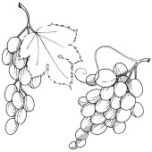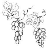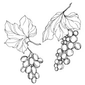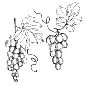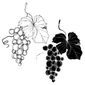 Wektor Jagoda winogronowa zdrowe jedzenie. Czarno-biała grawerowana sztuka tuszu. Izolowany element ilustracji winogron.