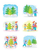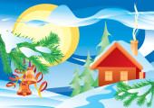 tło ferie zimowe z domu i świerku na Boże Narodzenie i nowy rok z miejscem na tekst,