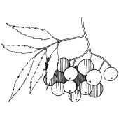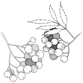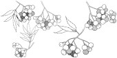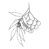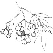Wektor Sorbus gałąź z jagoda i liść. Czarno-biała grawerowana sztuka tuszu. Izolowany element ilustracji łabędzia.