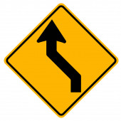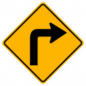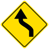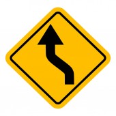 Zakrzywiony znak drogowy w lewo, ilustracja wektora, izolacja na białym tle symbole, etykieta. EPS 10