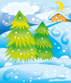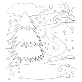 tło ferie zimowe z domu, ogrodzenia, lodowisko i jodły na Boże Narodzenie i nowy rok z miejscem na tekst,