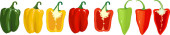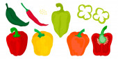 Grupa jasnoczerwona, zielona i żółta słodka papryka izolowana na białym tle