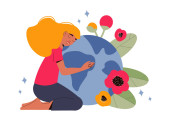 Wektor ilustracja z dziewczyna siedzi na wielkim abstrakcyjnym jabłku.