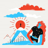 Zdjęcie "Wektor ilustracja z dziewczyna siedzi na wielkim abstrakcyjnym jabłku." może być wykorzystywane do celów osobistych i komercyjnych zgodnie z warunkami zakupionej licencji Royalty-free. Obraz jest dostępny do pobrania w jakości wysokiej rozdzielczości do 5760x3840.