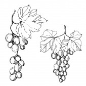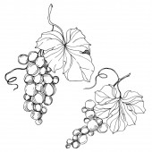 Zdjęcie "Wektor Jagoda winogronowa zdrowe jedzenie. Czarno-biała grawerowana sztuka tuszu. Izolowany element ilustracji winogron." może być wykorzystywane do celów osobistych i komercyjnych zgodnie z warunkami zakupionej licencji Royalty-free. Obraz jest dostępny do pobrania w jakości wysokiej rozdzielczości do 5760x3840.