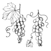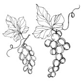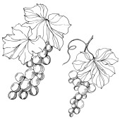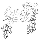 Wektor Jagoda winogronowa zdrowe jedzenie. Czarno-biała grawerowana sztuka tuszu. Izolowany element ilustracji winogron.