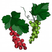 Wektor Jagoda winogronowa zdrowe jedzenie. Czarno-biała grawerowana sztuka tuszu. Izolowany element ilustracji winogron.