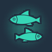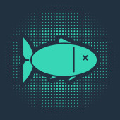 Ikona szkieletu Green Fish odizolowana na niebieskim tle. Znak kości ryby. Abstrakcyjne kółko przypadkowych kropek. Ilustracja wektora