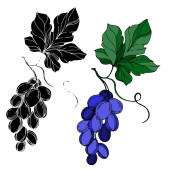 Wektor Jagoda winogronowa zdrowe jedzenie. Czarno-biała grawerowana sztuka tuszu. Izolowany element ilustracji winogron.