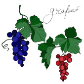 Wektor Jagoda winogronowa zdrowe jedzenie. Czarno-biała grawerowana sztuka tuszu. Izolowany element ilustracji winogron.