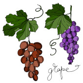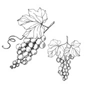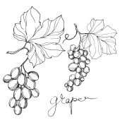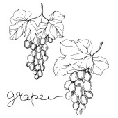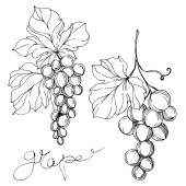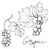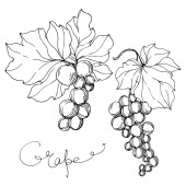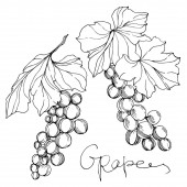 Wektor Jagoda winogronowa zdrowe jedzenie. Czarno-biała grawerowana sztuka tuszu. Izolowany element ilustracji winogron.