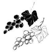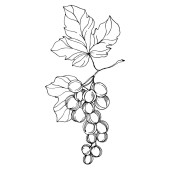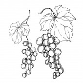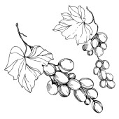 Wektor Jagoda winogronowa zdrowe jedzenie. Czarno-biała grawerowana sztuka tuszu. Izolowany element ilustracji winogron.